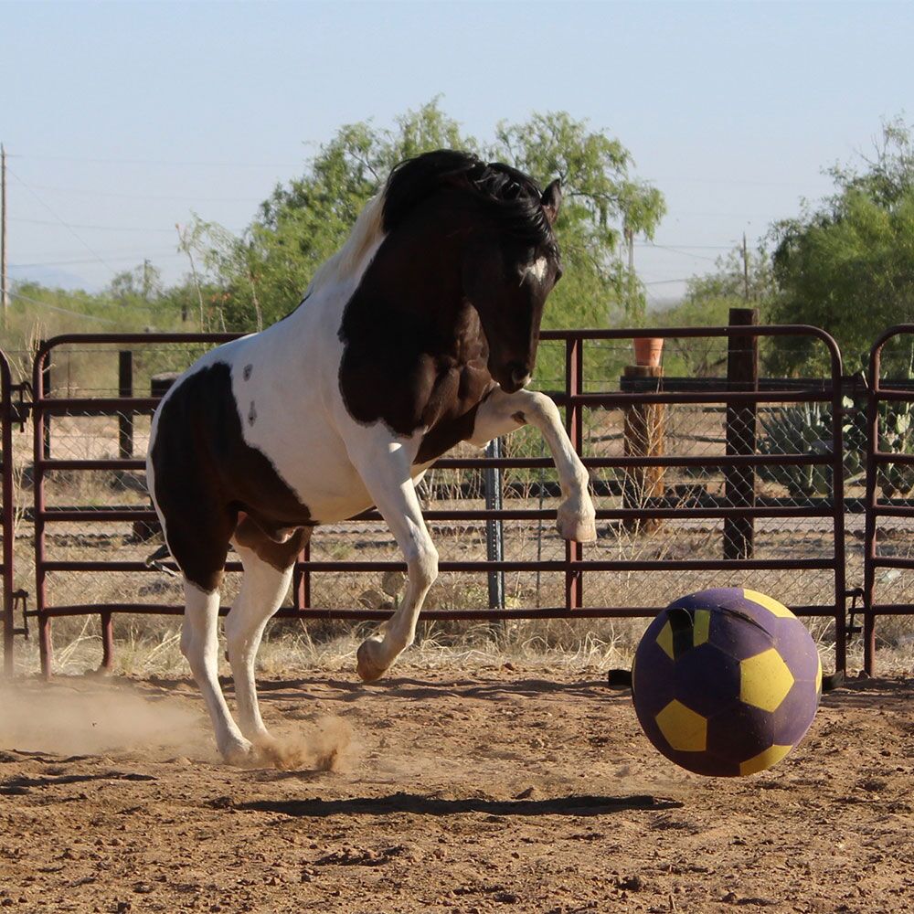 The 25″ size ball is recommended for foals, minis, ponies, and donkeys. For full-size horses, we recommend the 40″ size ball.